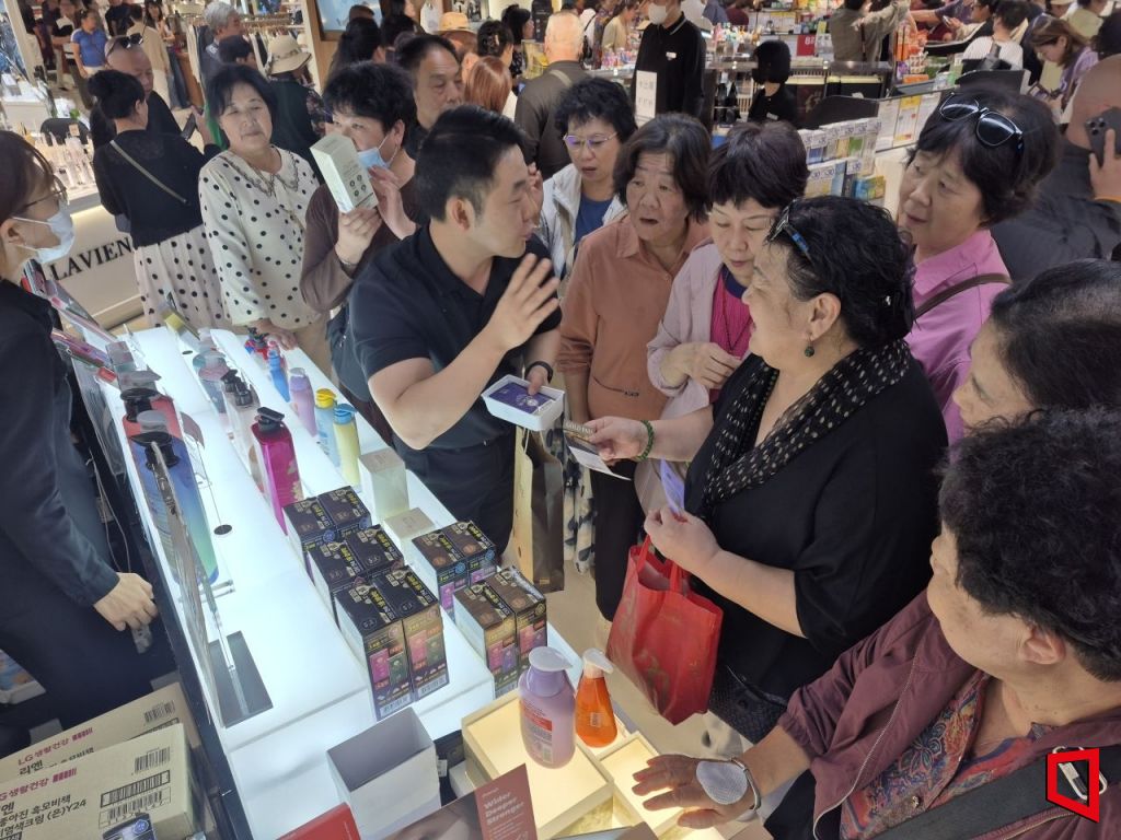 업황 부진으로 면세업계가 어려움을 겪고 있는 가운데 모처럼 대규모 중국인 관광객들이 영업장을 방문하자, 이들을 환영하는 신라면세점 관계자들과 브랜드별 판매 직원들까지 어우러져 건물 내부에는 활기가 넘쳤다. 간식류와 화장품, 건강기능식품 등을 판매하는 지하 1층에 들어서자 유커들이 물건을 살펴보느라 분주한 모습이었다. 뷰티 브랜드의 한 판매 직원은 "평소에도 소규모로 단체 관광객들이 방문하고 있지만 수백명 단위의 중국인들이 영업장을 찾는 것은 보기 드문 광경"이라고 말했다.