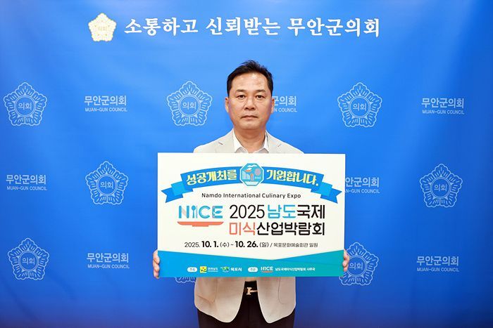 전남 무안군의회 이호성 의장이 '2025 남도국제미식산업박람회'의 성공을 기원하는 릴레이 응원 캠페인에 참여했다.