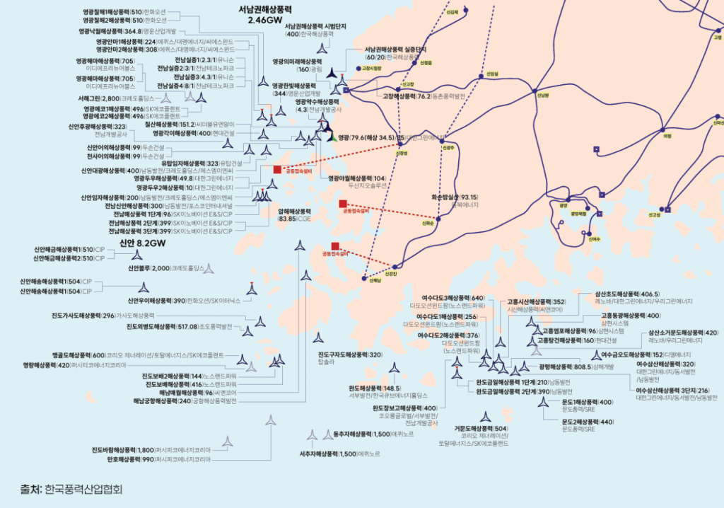이번 분석은 2024년 기준 전라남도 해역에서 발전사업 허가를 받은 총 1만7960.6메가와트(㎿) 57개 프로젝트를 대상으로 했다.