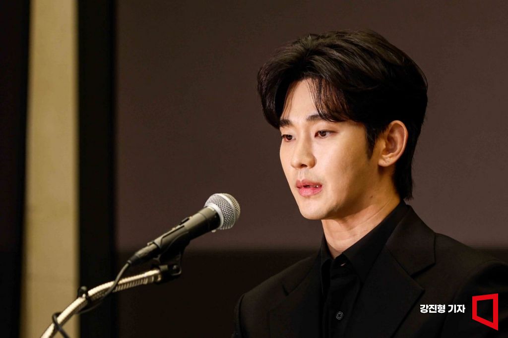 최근 불거진 사생활 논란에 대해 침묵을 지켜왔던 배우 김수현이 31일 서울 마포구 스탠포드호텔에서 입장발표를 하고 있다. 2025.3.31. 강진형 기자