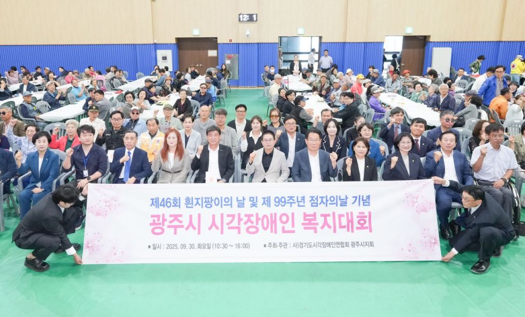 ㈔경기도시각장애인연합회 광주시지회는 30일 지역 내 시각장애인과 시민 300여 명이 참석한 가운데 제46회 흰 지팡이의 날 및 제99주년 점자의 날을 기념하는 '광주시 시각장애인 복지대회'를 성황리에 개최했다.