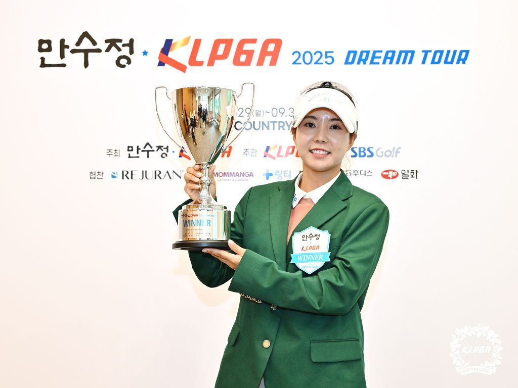 장은수가 만수정 KLPGA 2025 드림 투어 17차전 우승 직후 트로피를 들고 미소를 짓고 있다. KLPGA 제공