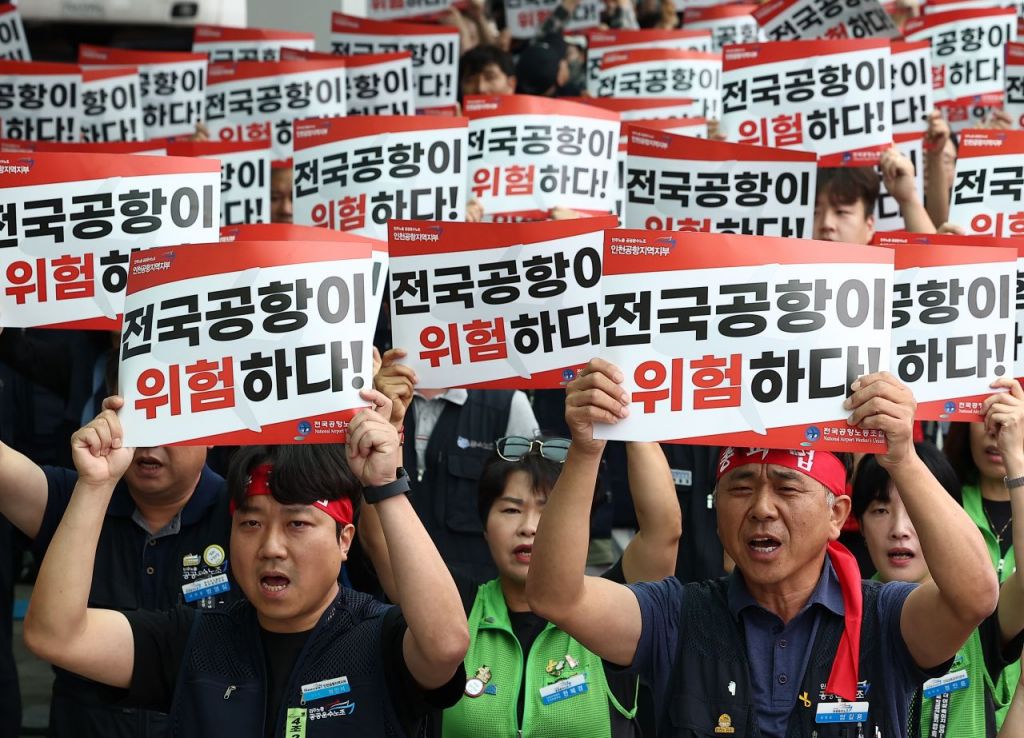공공운수노조 인천공항지역지부와 전국공항노조가 모인 전국공항노동자연대는 인천, 김포 등 전국 15개 공항에서 활주로·청사 유지보수, 소방, 전기설비 관리 등을 담당하는 노동자 1만5000명으로 구성됐다.