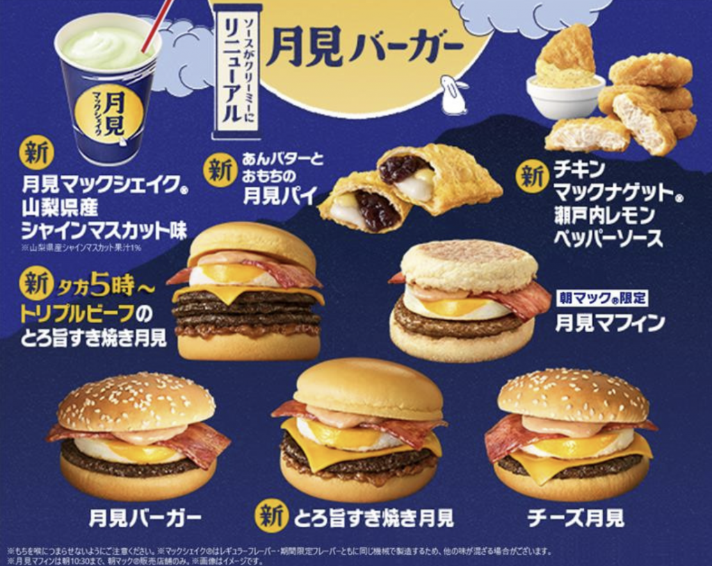 일본 맥도날드가 기간 한정으로 선보이는 달맞이 메뉴들. 일본 맥도날드.