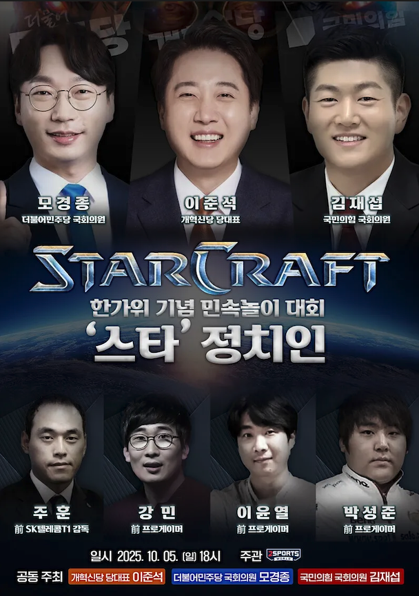 1일 개혁신당은 추석 전날인 5일 서울 영등포의 한 피시(PC)방에서 개혁신당 이준석 대표, 더불어민주당 모경종 의원, 국민의힘 김재섭 의원이 스타크래프트 대회를 연다고 밝혔다. 개혁신당