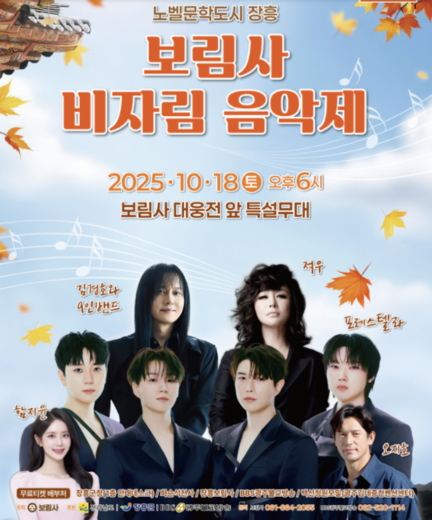 전남 장흥군 보림사가 오는 18일 '노벨문학도시 장흥, 보림사 비자림 음악제'를 개최한다. 전남도와 장흥군이 후원하는 이번 행사는 천년 고찰에서 지역 문화와 예술을 아우르는 무대로 꾸며진다.