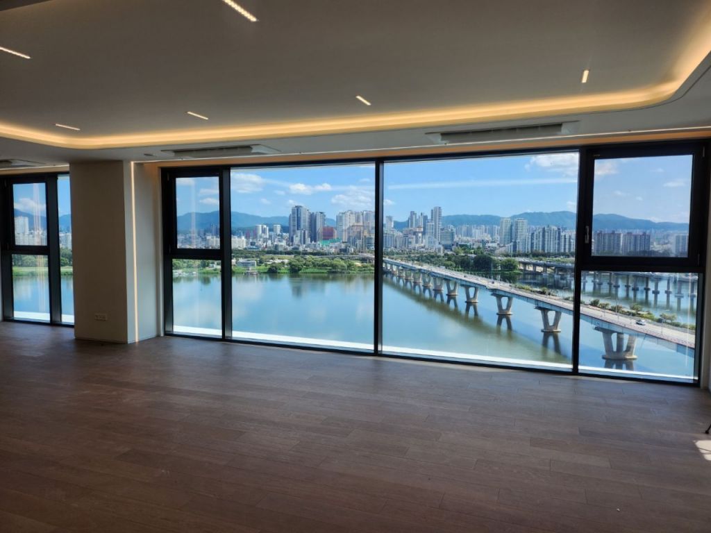 포제스 한강 전용 216㎡타입 내부 방의 한강뷰. 오유교 기자.