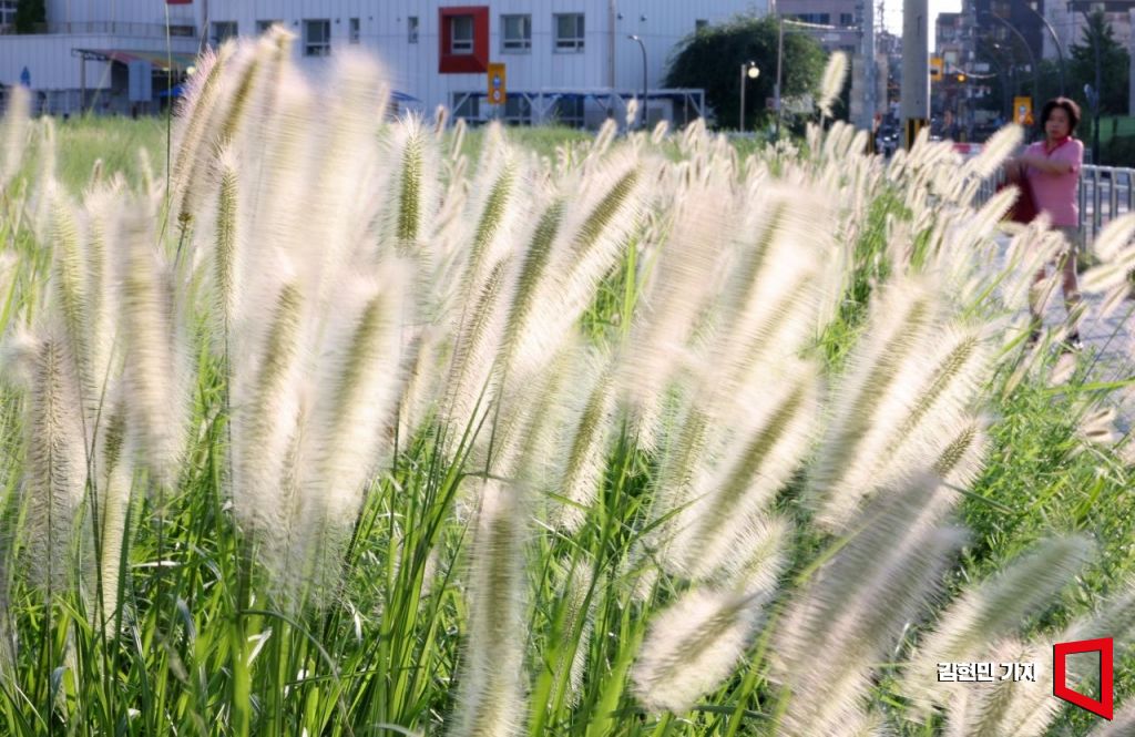 지난달 4일 서울 마곡동 길가에 수크령이 만개해 있다. 김현민 기자