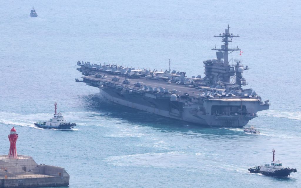 부산 떠나는 미 핵 항모 '칼빈슨함'. 연합뉴스