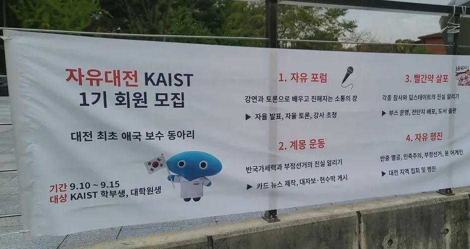 한국과학기술원(KAIST·카이스트) 내 극우 성향 동아리 '자유대전 카이스트' 홍보 현수막. 사회관계망서비스(SNS) 캡처