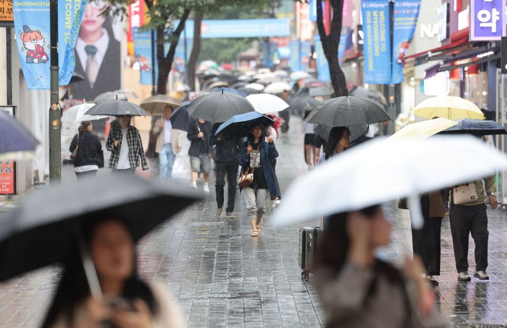 아침 최저기온은 17∼22도, 낮 최고기온은 23∼28도로 예보됐다. 비가 오지 않는 제주도는 낮기온이 28도까지 올라 다소 덥겠다.