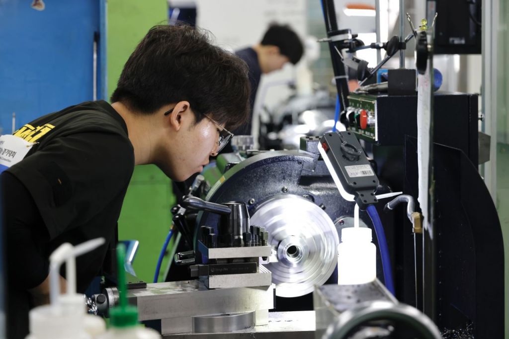 선반 기계를 다루며 금속 가공 작업을 집중하는 직업계고 학생. 광주시교육청 제공
