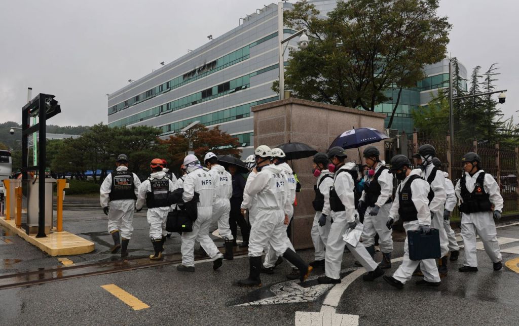 국립과학수사연구원 등 합동감식반 관계자들이 지난달 28일 대전 국가정보자원관리원 안으로 들어가고 있다. 연합뉴스