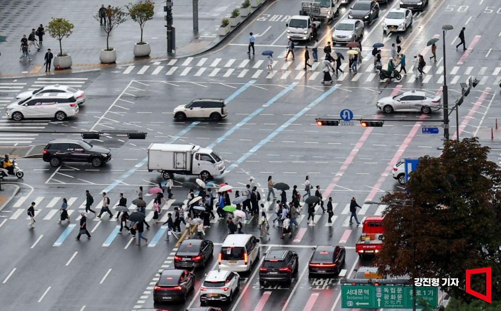 10일 서울 종로구 세종로 네거리에서 추석 연휴를 마친 직장인들이 출근길에 오르고 있다.