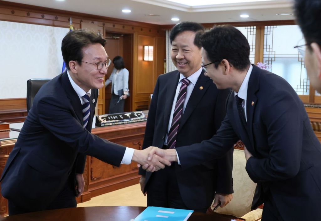 김민석 국무총리가 2일 서울 종로구 정부서울청사 총리 집무실에서 열린 '제1회 3+알파(α) 회의' 에 참석해 발언을 하고 있다. 회의에는 김 총리를 비롯해 구윤철 경제부총리 겸 기획재정부 장관, 배경훈 과기부총리 겸 과학기술정보통신부 장관 등이 참석했다. 이후 회의에서도 이들 3명을 '필수 참석멤버'로 하되 회의 시기에 중요한 현안에 따라 정해질 것으로 예상된다. 2025.10.2 청사사진기자단