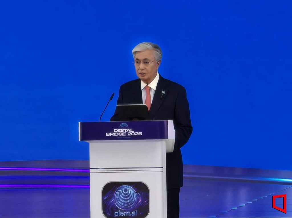 카심-조마르트 토카예프 카자흐스탄 대통령이 지난 2일(현지시간) 수도 아스타나에서 열린 '디지털 브리지 포럼 2025' 개막식에서 인사말을 하고 있다. 노경조 기자