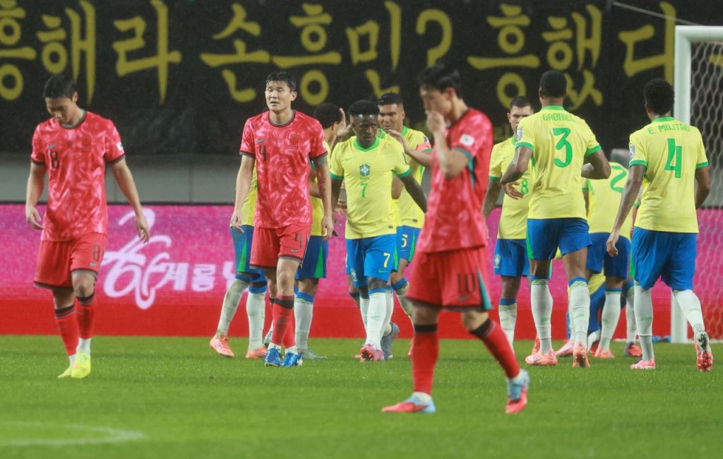 홍명보호는 10일 서울월드컵경기장에서 열린 브라질과 평가전에서 0대5로 크게 졌다. 한국 대표팀은 전반에 두 골, 후반에 세 골을 허용하며 허무하게 무너졌다. 브라질에서 호드리구와 이스테방이 두 골씩 넣었고 비니시우스 주니오르가 한 골을 넣었다.