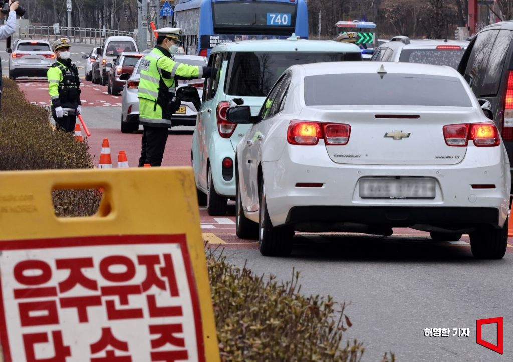서울 한 초등학교 근처에서 경찰이 음주 단속을 하고 있다. 기사 내용과 무관