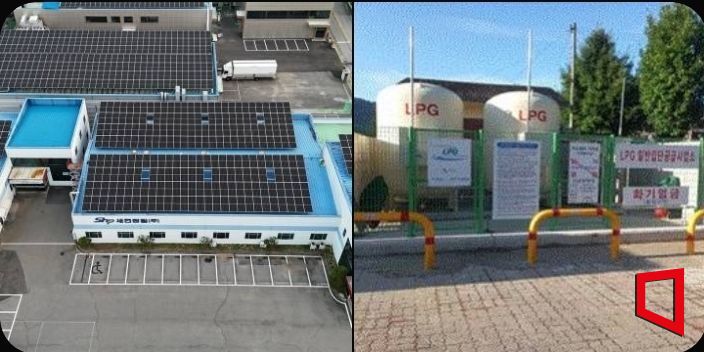 좌)공장위 태양광 설치 우소형저장탱크 설치/김이환기자