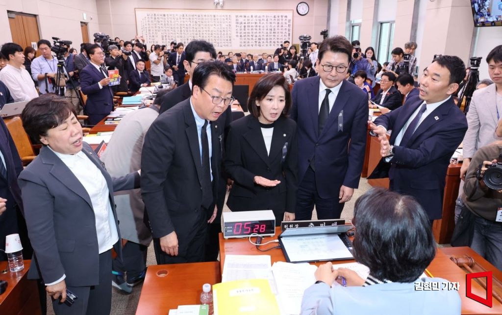 13일 국회에서 열린 법제사법위원회 국정감사에서 국민의힘 의원들이 추미애 위원장이 조희대 대법원장에 대한 질의를 시작하자 항의하고 있다. 2025.10.13 김현민 기자