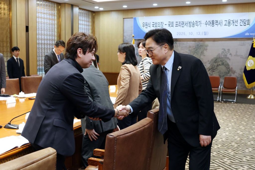 우 의장은 "이번 간담회를 통해 국회가 모범적 사용자로 거듭나는 길을 모색하겠다"며 "방송작가와 수어통역사의 전문성을 인정하고 안정적 노동환경의 기준을 수립하는 일부터 시작하겠다"고 덧붙였다.