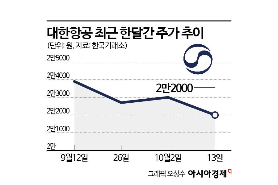 대한항공과 아시아나항공도 부진한 주가 흐름이 이어지고 있다. 대한항공은 최근 한 달간 7.95% 하락했다. 같은 기간 아시아나항공도 5% 넘게 내렸다.