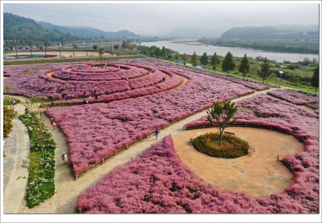 합천읍 황강변 신소양 체육공원에서는 핑크빛 가을이 한창이다. 이곳은 핑크뮬리와 황화 코스모스, 구절초, 아스타 국화가 어우러져 가을 정취를 더하며, 사회관계망서비스(SNS)에서 '합천의 핫스팟'으로 떠올랐다.