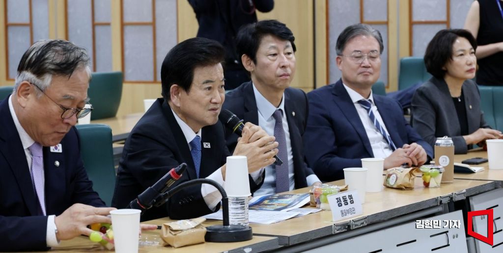 정동영 통일부 장관이 25일 국회 의원회관에서 열린 더불어민주당 초선의원 모임에서 '격동의 국제정세와 한반도, 이재명 정부의 대응 전략'을 주제로 강연하고 있다. 2025.9.25 김현민 기자