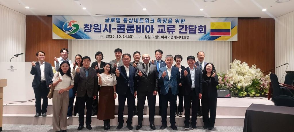 경남 창원특례시는 14일 창원그랜드머큐어 앰버서드호텔에서 '글로벌 통상네트워크 확장을 위한 창원시·콜롬비아 교류 간담회'를 열고 산업·통상 협력 강화 및 창원시 글로벌비즈센터(GBC)의 중남미 거점 구축 방안을 깊이 있게 논의했다.