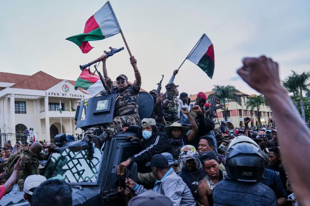 반정부 시위가 전국으로 확산되자 라조엘리나 대통령을 지지하던 군부도 등을 돌렸다. 그의 집권을 도왔던 마다가스카르의 정예부대인 캡사트(CAPSAT)가 시위대 편으로 돌아서고, 군부와 경찰까지 시위대에 발포하지 않겠다고 선언하면서 정권이 무너졌다. 라조엘리나 대통령은 지난 12일, 프랑스군 군용기를 타고 아랍에미리트(UAE)로 도주한 것으로 알려졌다. 프랑스 정부는 공식적 반응을 자제하고 있지만, 프랑스 국적을 보유하고 있던 라조엘리나 대통령의 국외 탈출을 도와준 것으로 추정되고 있다.