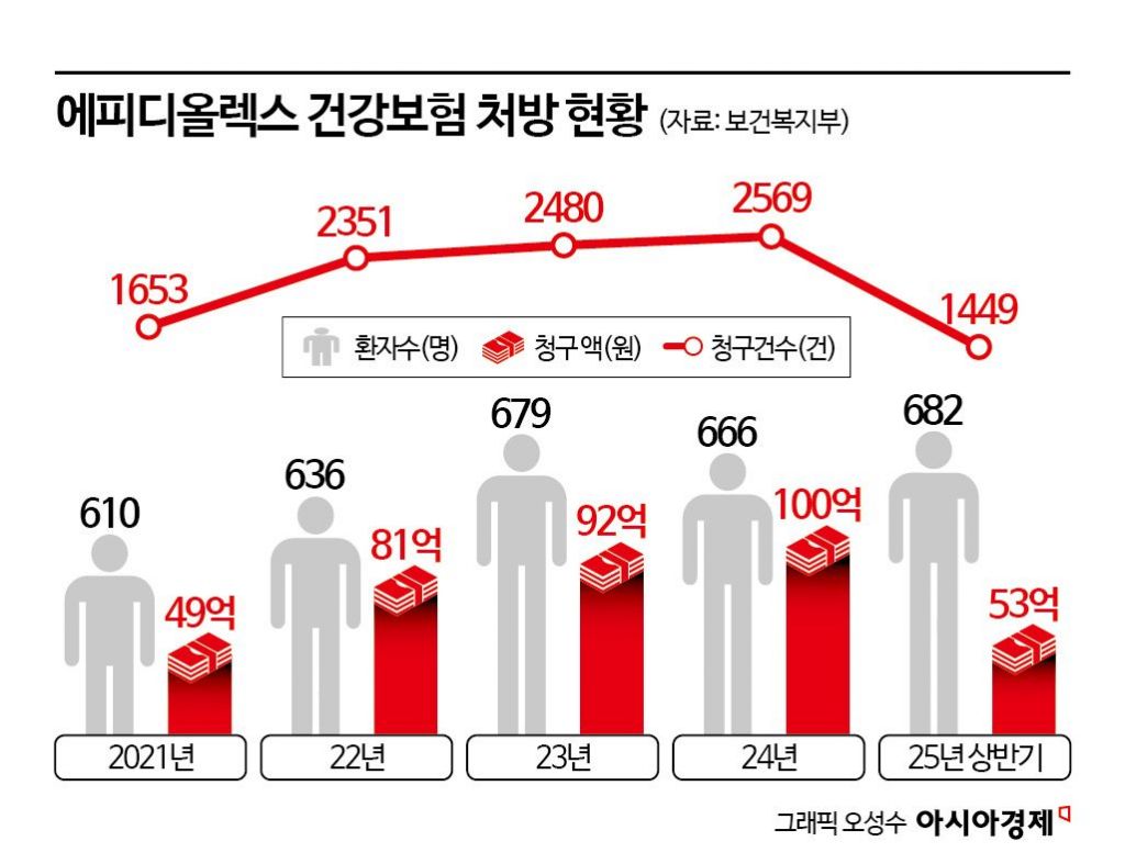 올해도 상반기에만 에디피올렉스의 청구 건수는 1449건, 청구액은 53억원으로 지속적으로 증가하고 있다.
