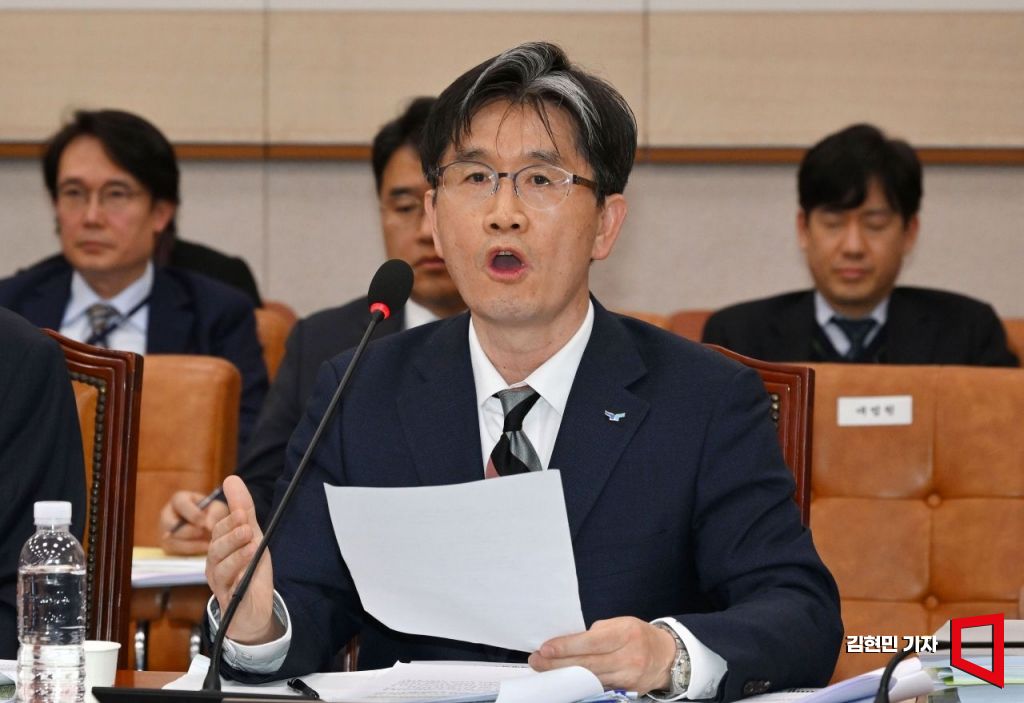 오동운 공수처장이 지난 3월12일 국회에서 열린 법제사법위원회 전체회의에서 윤석열 대통령의 구속 취소 결정과 관련한 질의에 답하고 있다.