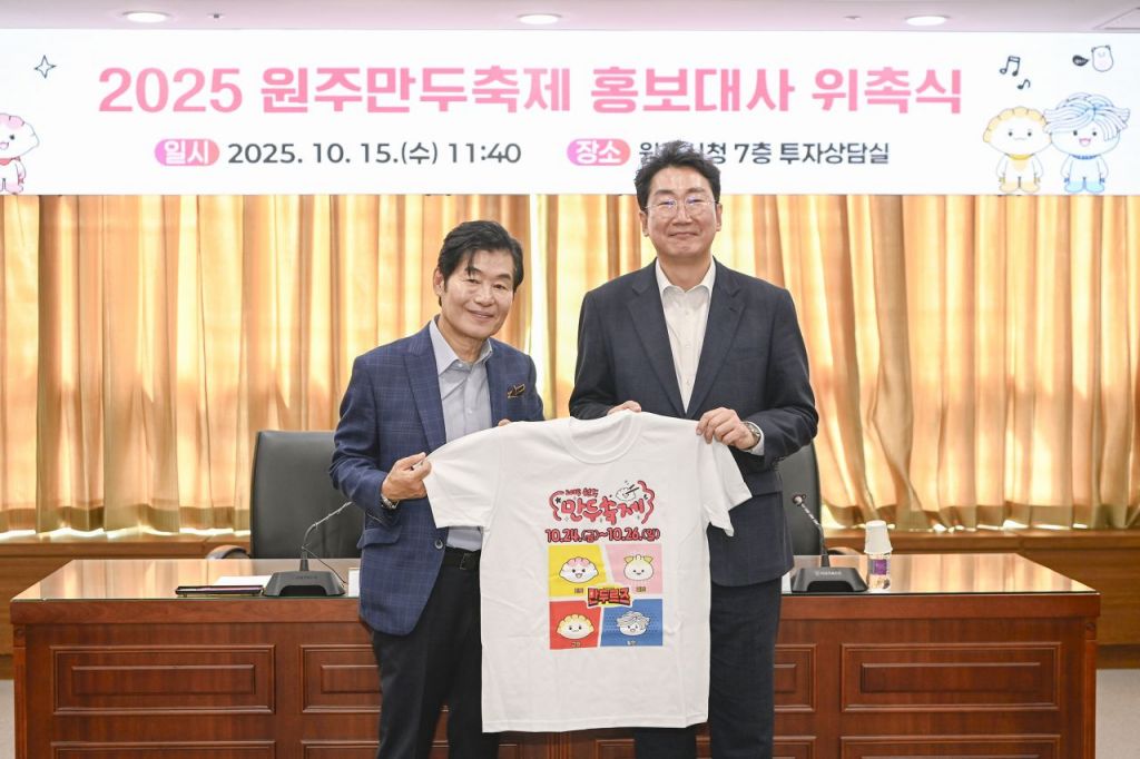 강원도 원주시는 오는 24일부터 26일까지 3일간 열리는 '2025 원주만두축제'의 성공적 개최를 위해 15일 이연복 셰프 홍보대사 위촉식과 축제 최종 보고회를 잇달아 개최했다.