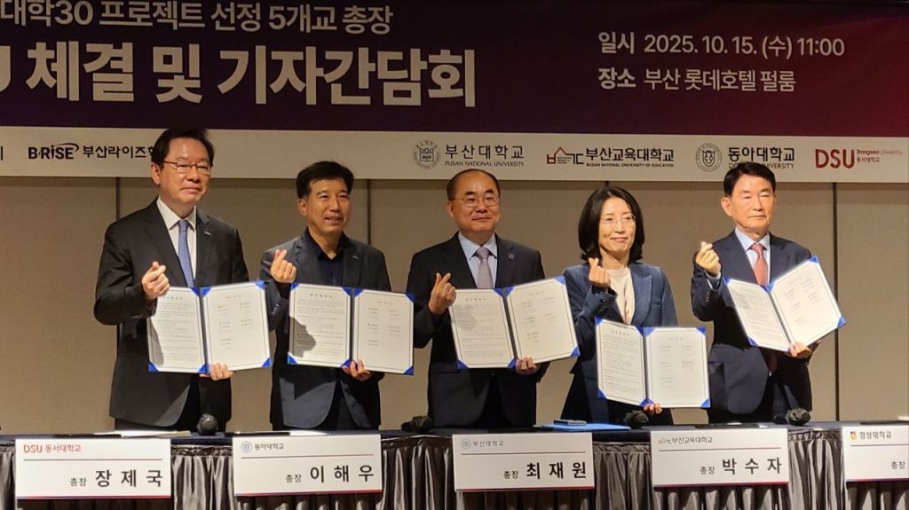 이해우 동아대 총장은 "대학별 혁신모델은 다르지만 지향점은 '부산과의 동반성장'으로 같다"며 "5개 대학이 가진 강점을 모아 지역 글로컬 시너지를 만들고 지역과 대학이 함께 성장하는 협력체계를 본격화하겠다"고 말했다.