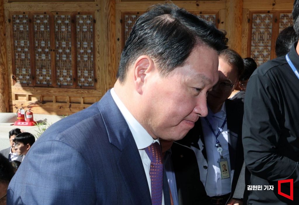 최태원 대한상공회의소 회장이 15일 국회 사랑재에서 열린 사회적 대화 공동선언식장으로 들어서고 있다.