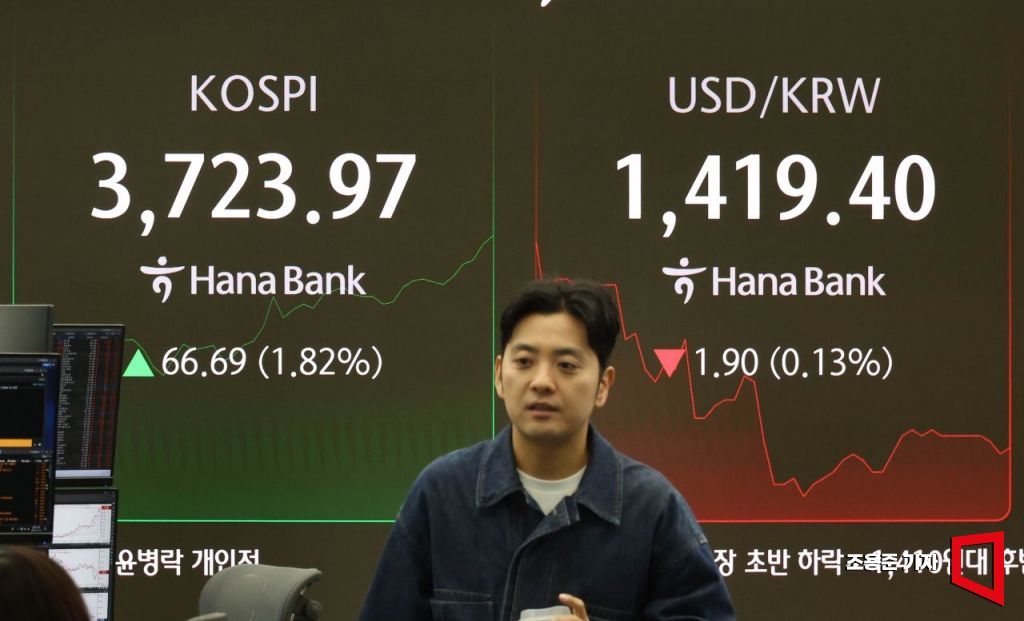코스피가 장중 연고점을 찍으며 거침없이 상승하고 있는 16일 서울 중구 하나은행 딜링룸 현황판에 코스피 지수 등이 표시되고 있다. 이날 코스피 지수는 전 거래일 대비 18.54포인트(0.51%) 오른 3,675.82에, 코스닥은 2.10포인트(0.24%) 오른 866.82에 개장했다.