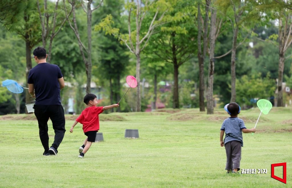 제법 시원한 바람이 불어온 휴일날, 아빠와 함께 나들이에 나선 아이들이 잠자리채를 들고 종횡무진하고 있다. 잠자리를 쫓으며 해맑게 웃는 아이들의 모습이 마치 동화 속 풍경처럼 정겹다. (서울식물원)
