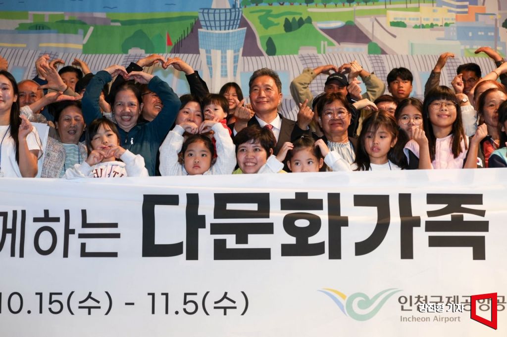이학재 인천국제공항공사 사장이 16일 인천 중구 인천국제공항공사 항공교육원에서 열린 '다문화가족 부모초청 환영행사'에서 참석자들과 기념촬영을 하고 있다.
