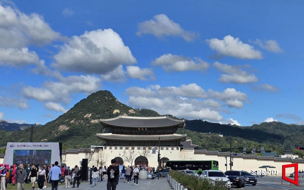 모처럼 가을다운 날씨를 보인 16일 서울 종로구 경복궁일대 위로 높고 파란 가을하늘이 펼쳐져 있다.