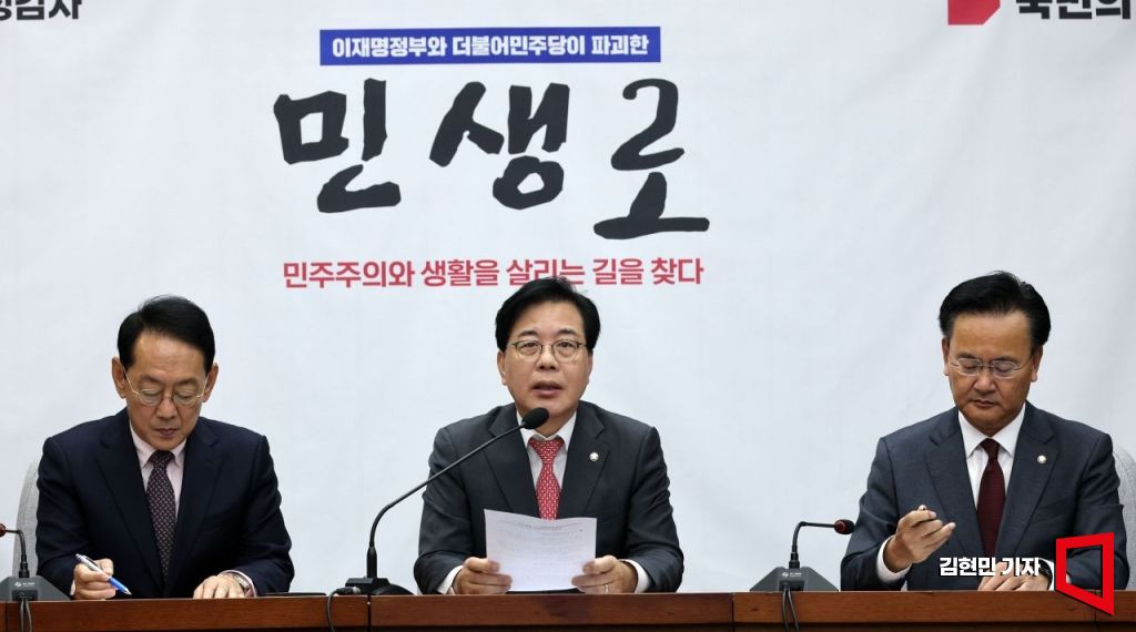 송언석 국민의힘 원내대표가 17일 국회에서 열린 국정감사대책회의에서 발언하고 있다. 2025.10.17 김현민 기자