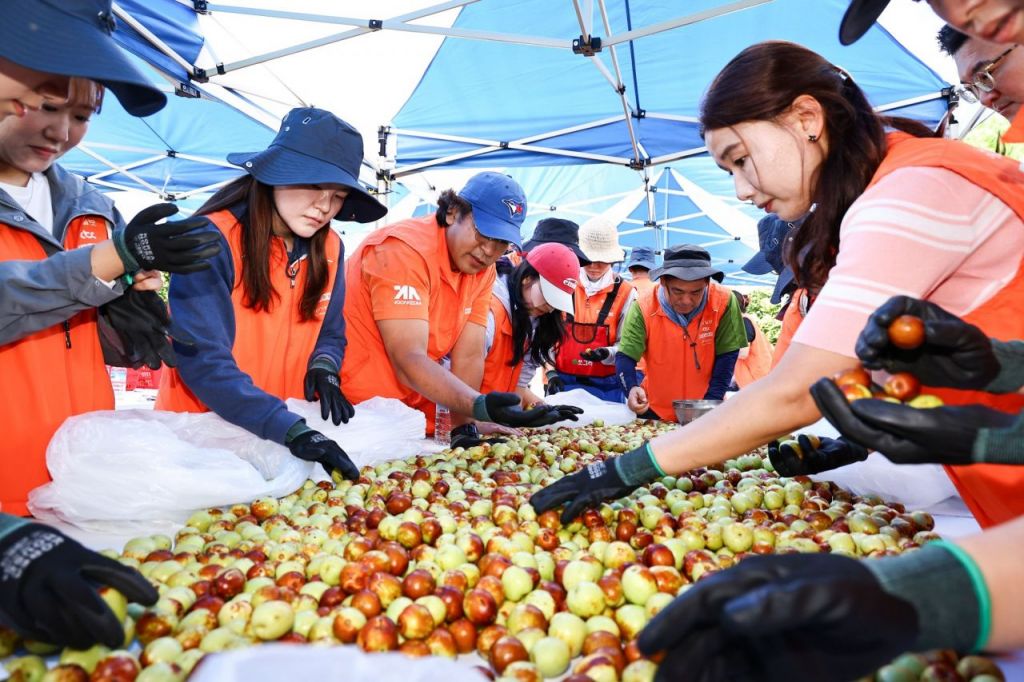 중앙그룹은 최근 농협중앙회와 함께 경기도 파주시 백석리의 사과대추 재배 농가를 찾아 수확 봉사활동을 진행했다고 17일 밝혔다.