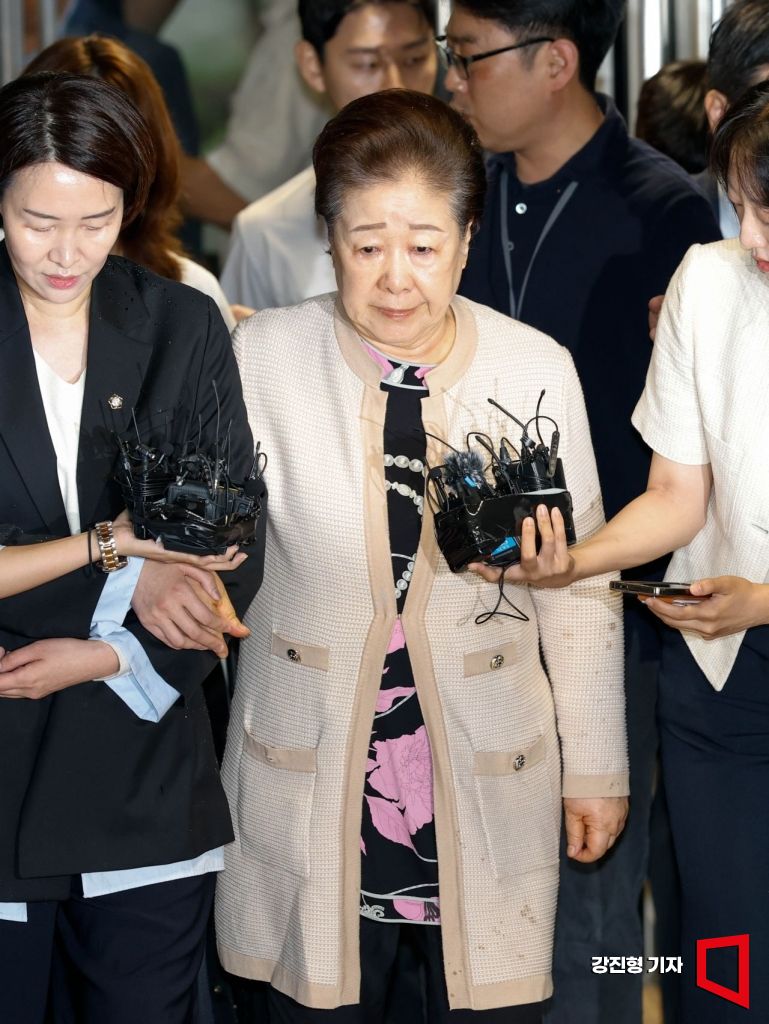 특검의 출석 요구를 세 번이나 불응했던 한학자 세계평화통일가정연합(통일교) 총재가 지난달 17일 서울 종로구 KT광화문빌딩에 마련된 김건희특검사무실에 출석하고 있다.