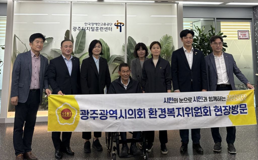 광주시의회 환경복지위원회(위원장 최지현)는 17일 한국장애인고용공단 광주지역본부를 방문, 운영 현황을 청취하고 기관 관계자들과 장애인 일자리 정책 현장을 살폈다. 이날 방문은 장애인 고용 현황과 공단의 주요 사업 추진 상황을 점검하고, 현장 애로사항 및 개선 사항을 듣기 위해 마련됐다.