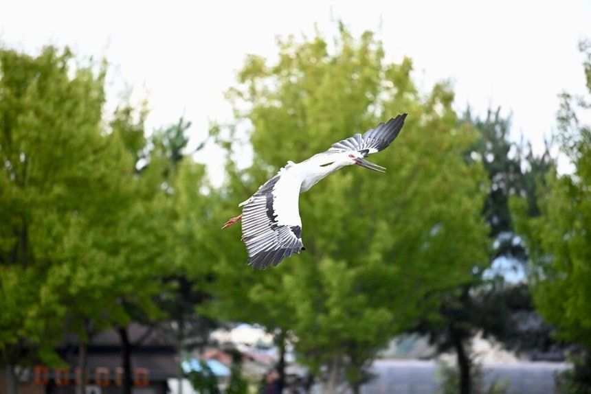 연합뉴스는 지난 15일 열린 김해시 과학관 개관식에서 황새 3마리를 방사하는 행사가 진행됐다고 17일 보도했다. 이날 행사에서 시는 2022년 충남 예산황새공원에서 황새 복원을 위해 들여온 황새 암수 한 쌍, 올해 3월 화포천 습지 봉하뜰에서 부화에 성공한 황새 세 마리 중 한 마리를 방사하기로 했다.
