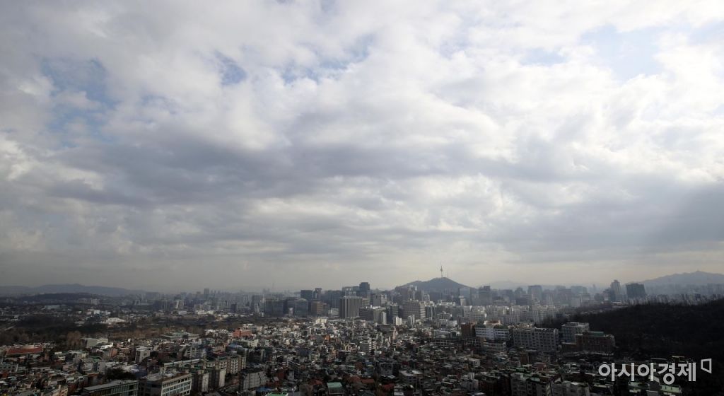 31일 서울 인왕산에서 바라본 하늘에 구름이 잔뜩 끼어 있다. 기상청은 전국이 가끔 구름많다가 오후부터 차차 흐려져 밤부터 수도권 등에서 비가 내리기 시작해 전국으로 확대될 것으로 예보했다. /김현민 기자 kimhyun81@