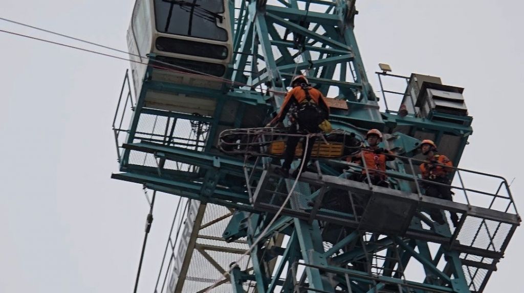 타워크레인 사고 대비구조훈련 장면. /사진= 세종소방본부 제공