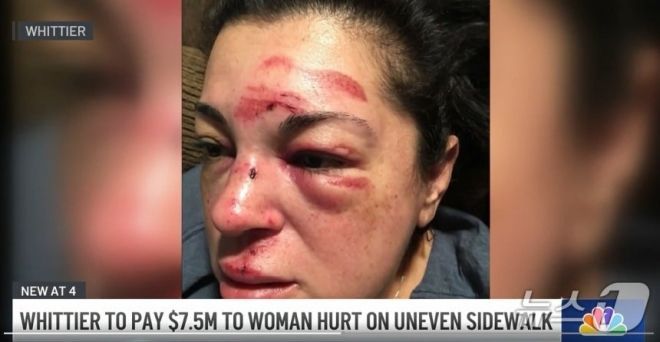미국에서 보도블록에 걸려 넘어져 상처를 입은 여성이 지방 정부로부터 거액의 보상을 받아 화제다.
