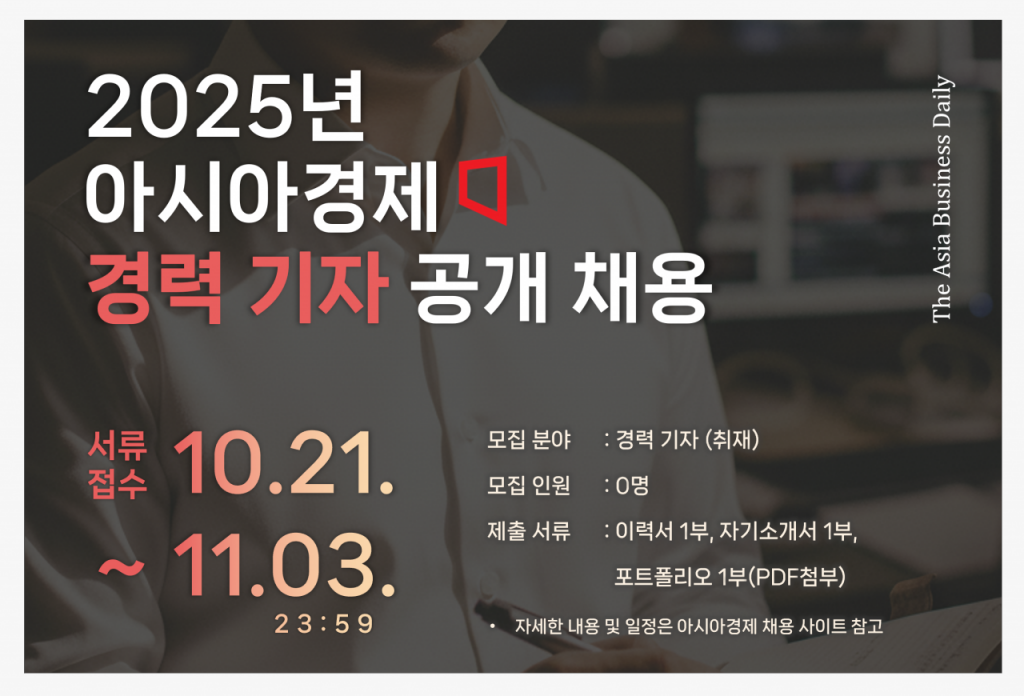 - 문의: 아시아경제 경영지원실 (02-2200-2193 / recruit@asiae.co.kr)