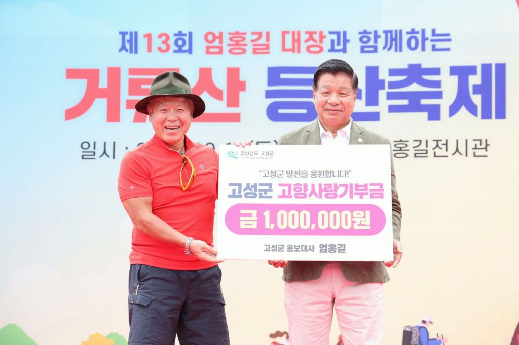 경남 고성군 홍보대사인 엄홍길 대장이 최근 고성군에 고향사랑기부금을 기탁해 고향 사랑을 실천했다.