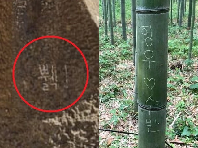 한편 최근 세계 여러 관광지에서 한국어 낙서가 다수 확인되고 있다. 일본 교토의 유명 명소인 아라시야마 대나무 숲길에는 한국인으로 보이는 커플 이름과 하트가 그려져 있었으며, 미국 애리조나주의 관광 명소인 그랜드 캐니언 바위 표면에도 한국어 낙서가 확인된 바 있다.